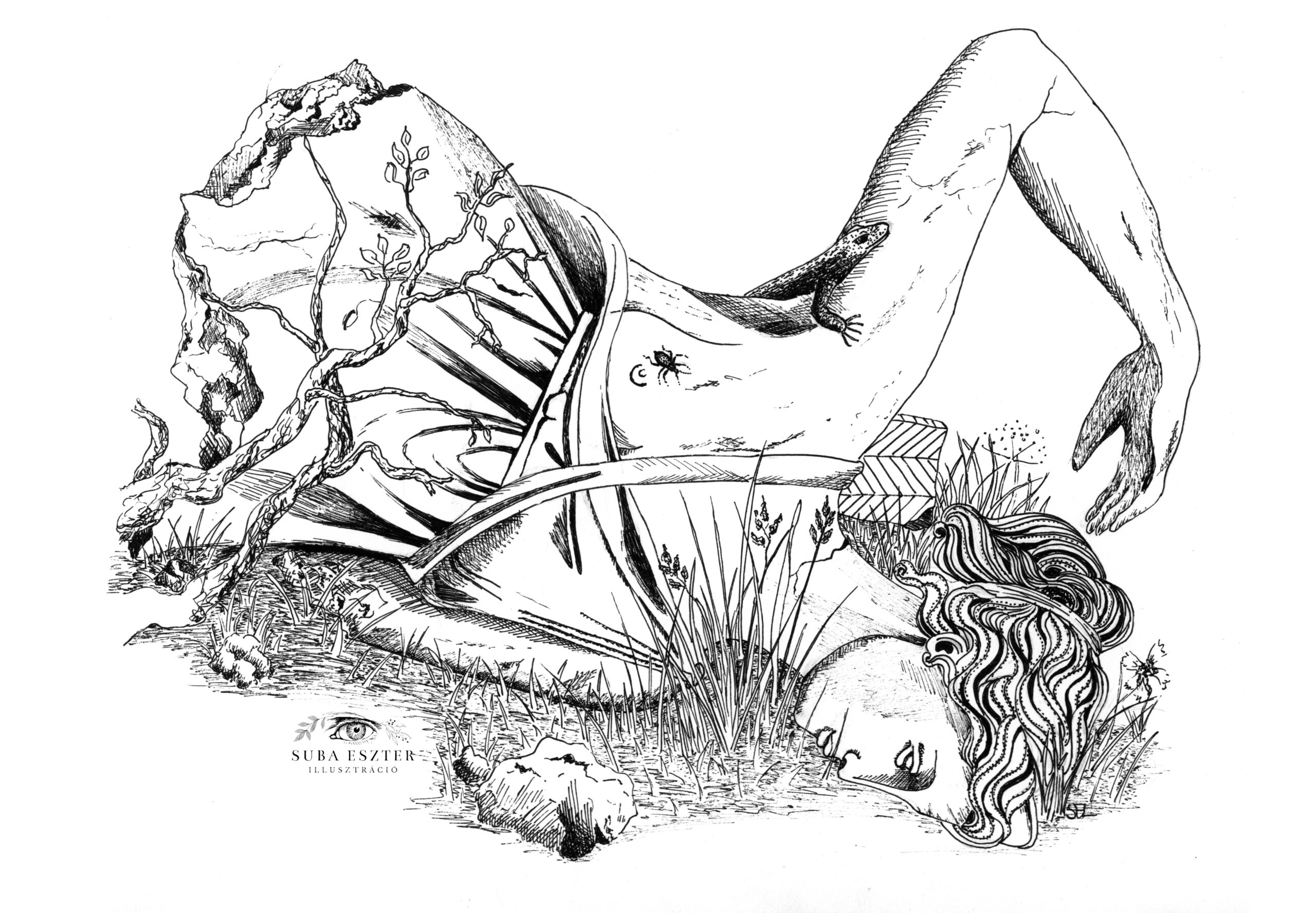 Aztán Dianához értünk. A talaj ott volt a leglazább, ahol állt. Talpazata megsüllyedt, oldalra dőlt, és vele az istennő a földre borult. Most a fűben hallgatózva figyelte a szarvasok lépteit erdejében, ajkával pedig, mellyel egykor társnőire mosolygott, még mindig mosolyogva a földet csókolta. Katharina tűnődőn félrehúzta a száját. Számomra különös és örökké tartó volt ez a csönd. A kőszobrok hallgattak, de Diana karja alól előbújt egy gyík, a vadásznő fedetlen mellén pedig bogár napozott mozgó csápjával.