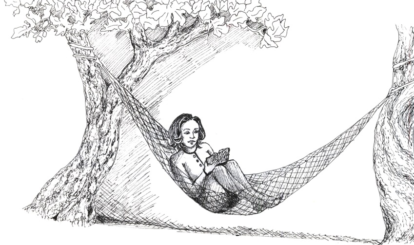 A függőágyat Annamariának találták ki, [...] Meglepetésemre itt is van egy függőágyunk, persze újabb fajta, a legvékonyabb nejlonvászonból szőtt, egy picike táskában is elfér, famerevítő nélküli, így a benne fekvőt szorosan körülöleli, mint egy halászháló vagy gubó. Tulajdonosa, aki kölcsönadta Annamariának, soha nem használja, modern ember, azaz nyugtalan és törekvő, egy nap vagy néhány óra pihenő már sok neki. Nálunk azonban nagy becsben van a függőágy, ritkaságszámba megy, csodáljuk, és mivel vendégfogadási lehetőségeink igencsak szűkösek, üdvözlés után nyomban felkínáljuk vendégeinknek. De függőágyra csak Annamaria született, csak ő hordja magával észrevétlenül, mint csiga a házat. Már csak ő tudja álmodni a régi leányálmokat, a fiú meg én, én meg a fiú, amihez feltétlenül hozzátartozik, hogy a Fiú váltogatja az arcát, mozdulatait, alakját is. A fügefa ágai közül Annamariára mosolyog, a régimódi lányra, aki hintázás közben gyengéden felfelé pillant, bizonyára hangokat is hall, csupa különböző hangot, melyek mind ugyanazt mondják, és voltaképpen ezzel már meg is tapasztalta a legjobbat, mert a függőágyas lányok igazából félnek a szerelem valóságától, és egészen rémületesnek képzelik. Gondolataik az életről még képlékenyek, csak semminek nem nekifogni, semmihez nem ragaszkodni, a jövő számtalan lehetőségéből azt kiválasztani, ami minden más ajtót bezár.